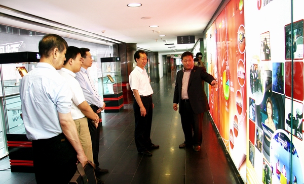 会后薛进文书记等一行考察了第一视频集团,张力军主席向薛进文书记等一行详细介绍了第一视频作为网络视频新媒体的发展历程,行业地位和发展愿景。薛书记等一行参观了演、编、播及监听监看等全部网络视频生产流程的演示和介绍。
