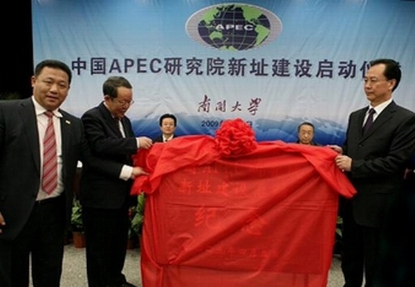 南开新闻网讯原址于南开大学伯苓楼的中国亚太经济合作组织(APEC)研究院将于2011年搬入新的办公大楼。4月5日,中国APEC研究院新址建设启动仪式在省身楼举行,标志着该院建设与发展迈出重要步伐。