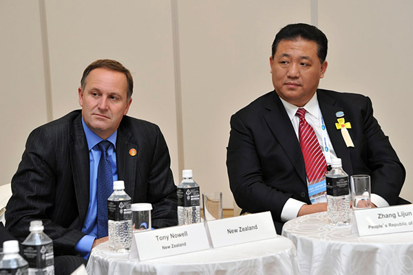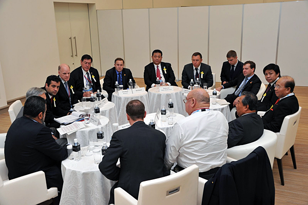 张力军理事长和俄罗斯总统梅德韦杰夫,新西兰总理约翰·基,印尼副总统布迪奥诺,墨西哥总统卡尔德龙及ABAC代表们对话