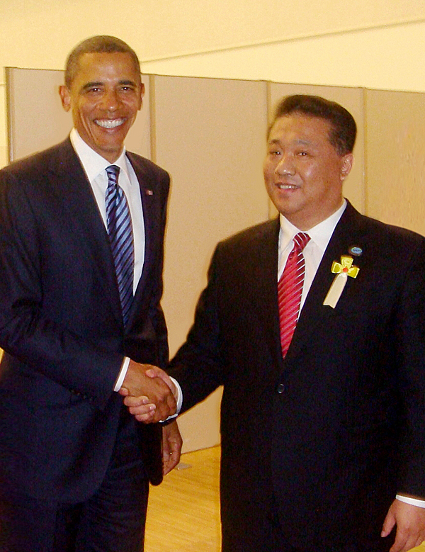 中国APEC发展理事会理事长张力军与美国总统奥巴马在ABAC对话会上