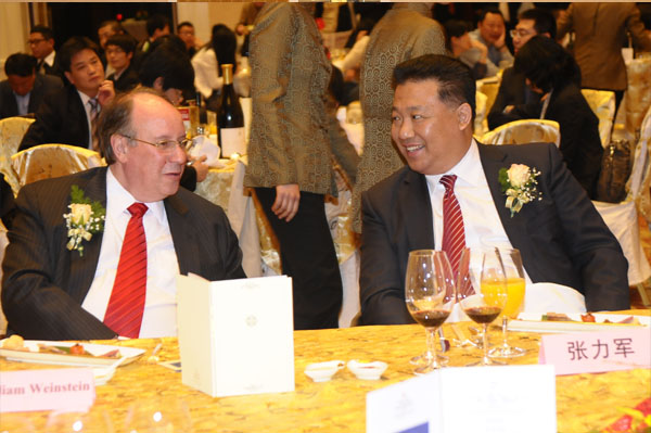 4月25日晚,应美国APEC组委会邀请,中国国际贸易促进委员会在北京中国大饭店隆重主办 “2011年美国夏威夷工商领导人峰会招待宴会”。中国贸促会副会长于平、中国APEC高官、外交部国际司副司长庞森、中国APEC发展理事会理事长、亚太经合组织工商咨询理事会(ABAC)中国代表、第一视频董事局主席张力军,ABAC中国代表、轩辕集团董事长杨云松,ABAC候补代表、中粮集团董事长宁高宁、茅台集团董事长季克良等中国工商界人士出席了晚宴。