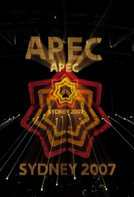 | 澳大利亚悉尼海湾大桥上2007年亚太经合组织会议会徽的彩灯 |