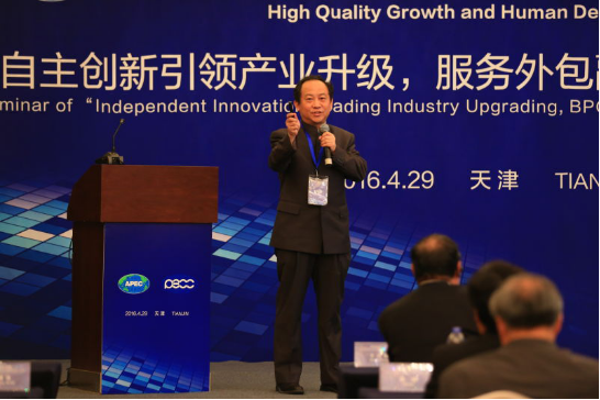 2016年4月29日,中国APEC发展理事会联合中国太平洋经济合作全国委员会(PECC)对外经济技术合作委员会主办的“高质量的增长和人类发展”研讨会在天津京基皇冠假日酒店举办。研讨会以“自主创新引领产业升级,服务外包融合创新发展”为议题展开研讨。