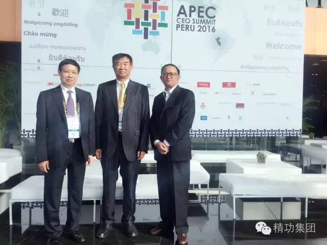 中国APEC发展理事会秘书长唐步生、精工集团董事长金良顺和中小企业发展中心主任黎志明一起参加APEC峰会