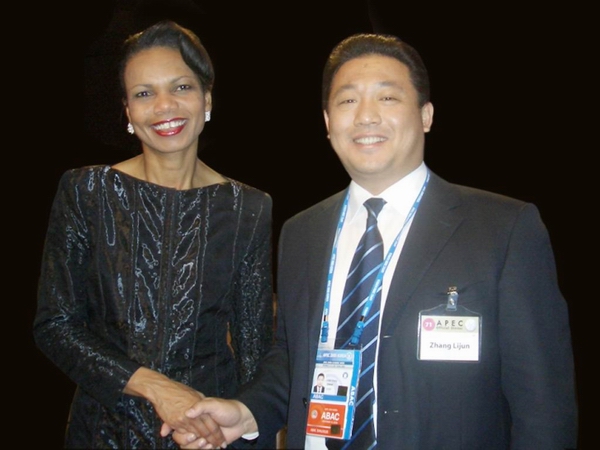 美国国务卿赖斯同张力军理事长合影
