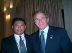 布什总统在APEC曼谷峰会上同张力军理事长合影